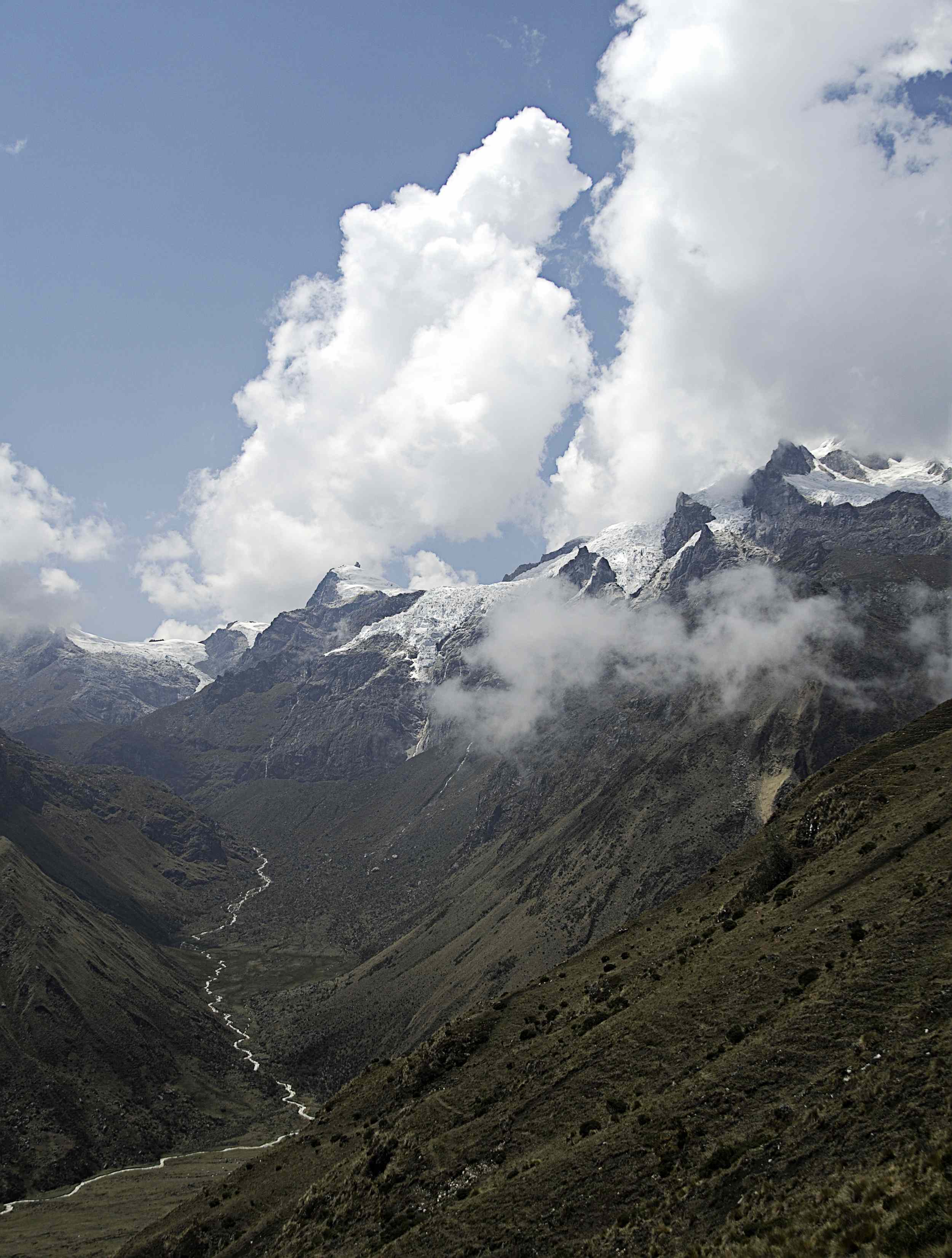 We do the 5-day Ausangate trek as a part of a 13-day guided trip to Cusco. We'll visit the ruins of Pisaq, Ollantaytambo, Machu Picchu, the Maras salt mines, the circular terraces of Moray, the weaving community of Chincheros, the ruins of Sacsayhuaman, and Cusco itself before we begin or trek. The trek itself begins about three hours from Cusco in Upis. Our first night we camp near hot springs with the most incredible view imaginable. From there our route ascends into the heights passing many lakes and beautiful vistas the whole way. The two high passes, and these are the highest passes used by any established trek in Peru, are approached by gradual ascents so they are not too difficult. We finish near more hot springs in Pacchanta. The full trip itinerary is flexible.